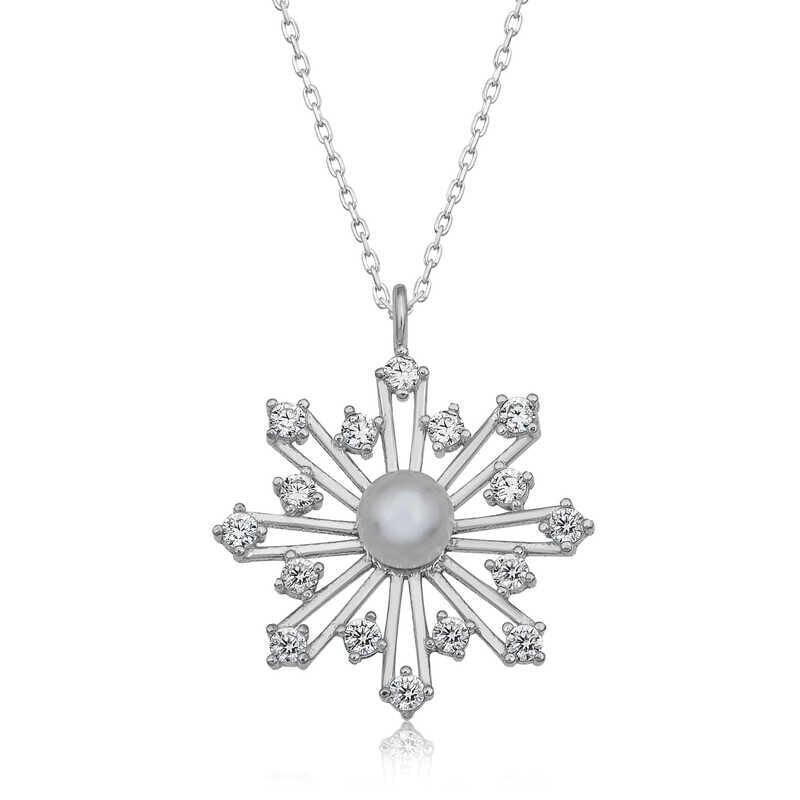 925 Ayar Gümüş İncili Kar Tanesi Kadın Gümüş Kolye