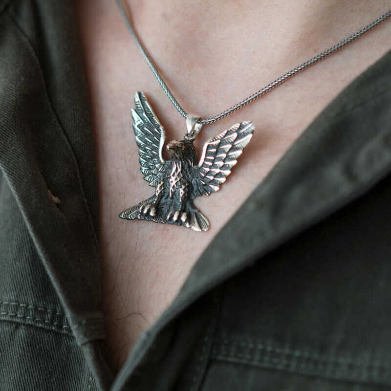925 Ayar Gümüş Kartal Erkek Gümüş Kolye