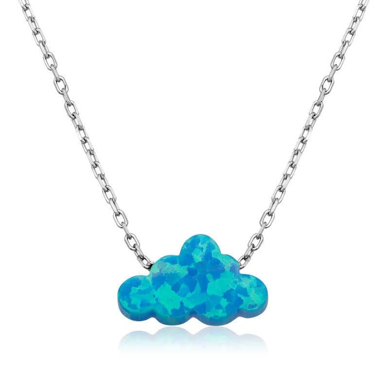 925 Ayar Gümüş Mavi Opal Taş Bulut Kolye