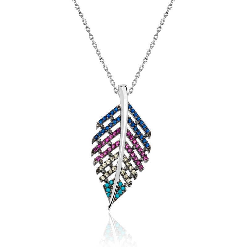 925 Ayar Gümüş Mix Taşlı Yaprak Kadın Gümüş Kolye