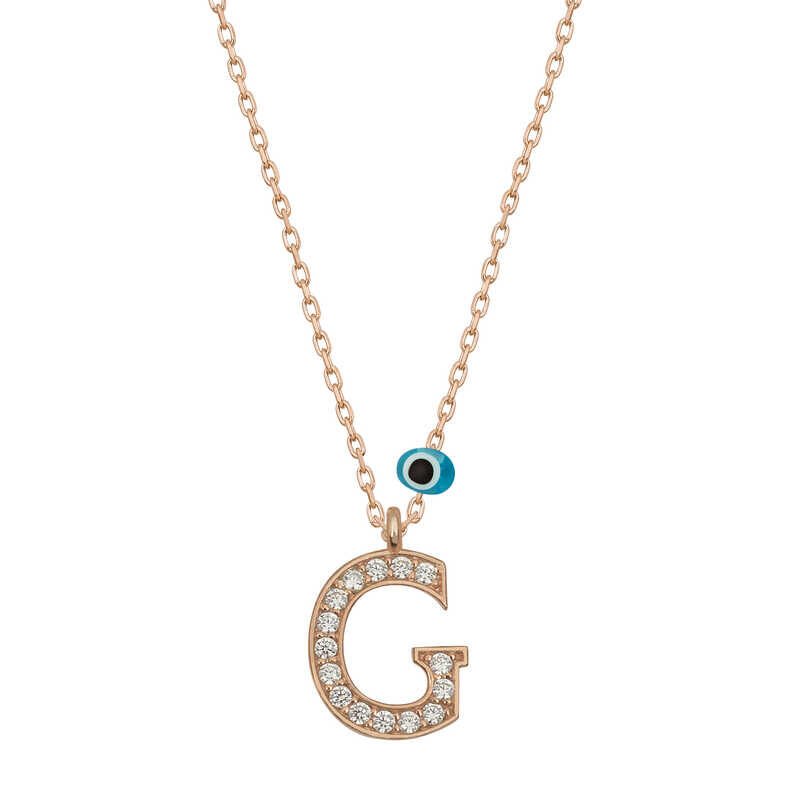 925 Ayar Gümüş Nazar Rose G Harfi Kadın Gümüş Kolye
