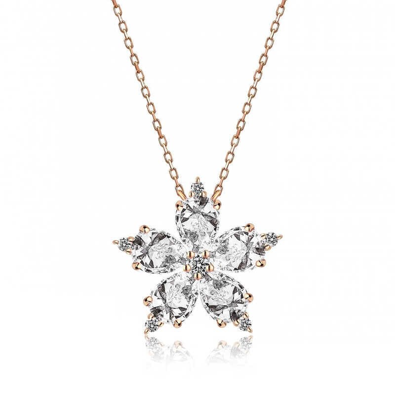 925 Ayar Gümüş Rose Beyaz Kamelya Çiçeği Kolye T5182