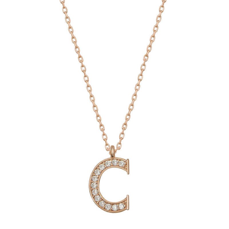 925 Ayar Gümüş Rose C Harfi Kadın Gümüş Kolye