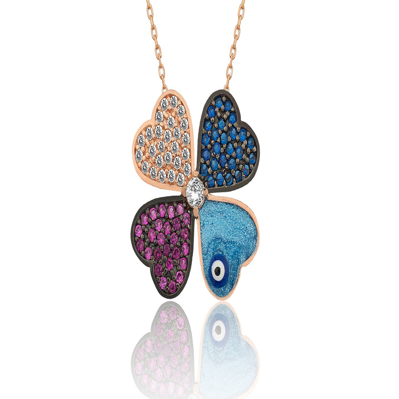 925 Ayar Gümüş Rose Dört Yapraklı Yonca Kadın Kolye