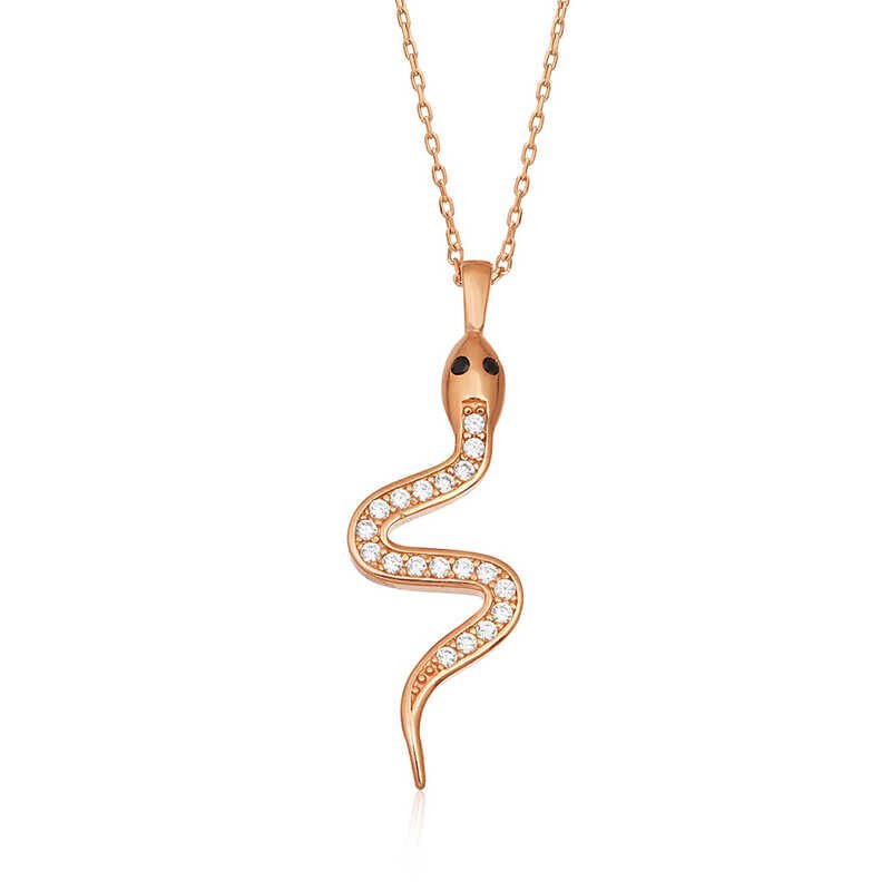 925 Ayar Gümüş Rose Yılan Kadın Gümüş Kolye