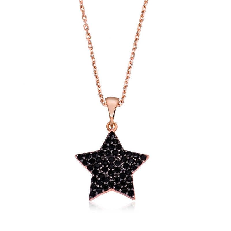 925 Ayar Gümüş Siyah Taşlı Yıldız Kadın Gümüş Kolye