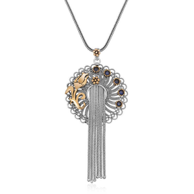 925 Ayar Gümüş Telkari Mavi Taşlı Kadın Gümüş Kolye