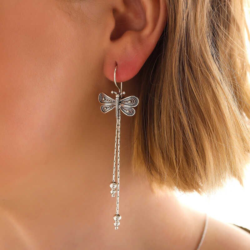 925 Ayar Gümüş Telkari Sallantılı Yusufçuk Kadın Küpe