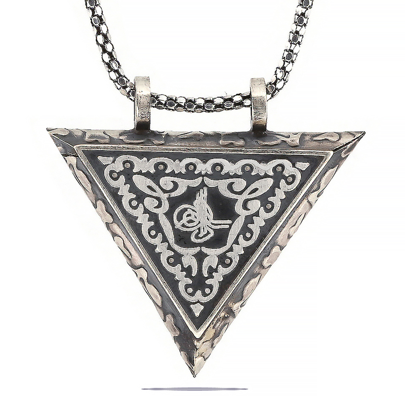 925 Ayar Gümüş Üçgen İçi Açılabilen Tuğra Muskalık Gümüş Kolye