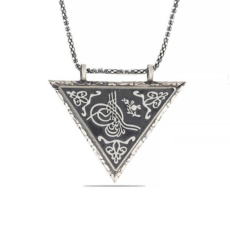 925 Ayar Gümüş Üçgen İçi Açılabilen Tuğra Muskalık Gümüş Kolye