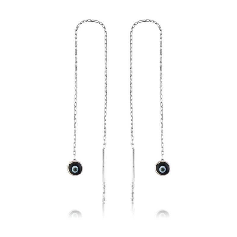 925 Ayar Gümüş Zincirli Lacivert Nazar Küpe