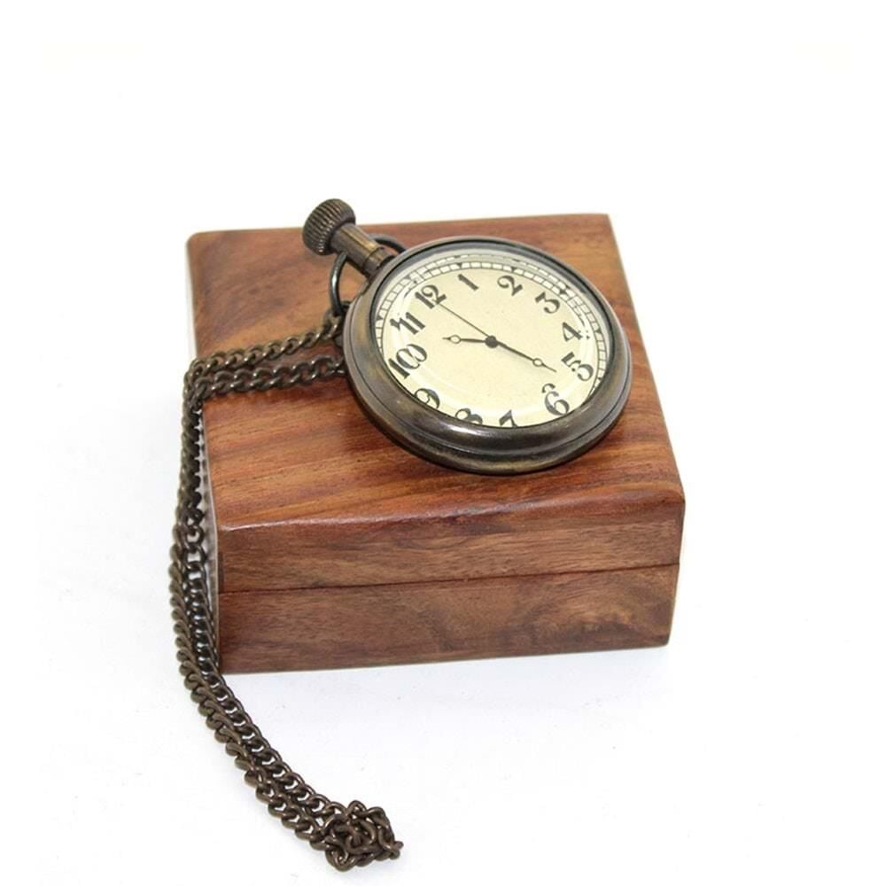 Ahşap Kutulu Pirinç Köstekli Saat
