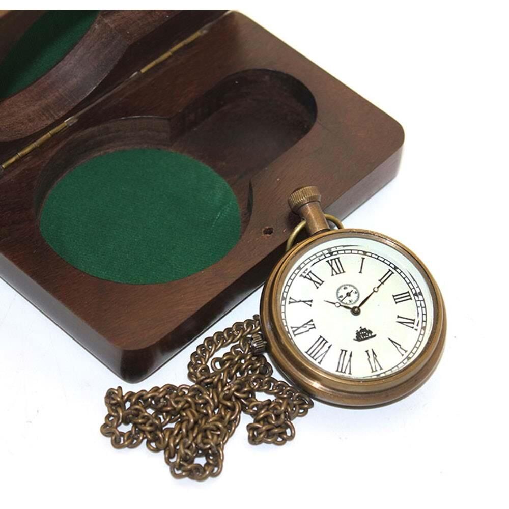 Ahşap Kutulu Pirinç Köstekli Saat