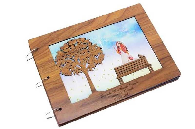 Albüm Ahşap Kapaklı Yatay Temalı Dekoratif Hediyelik