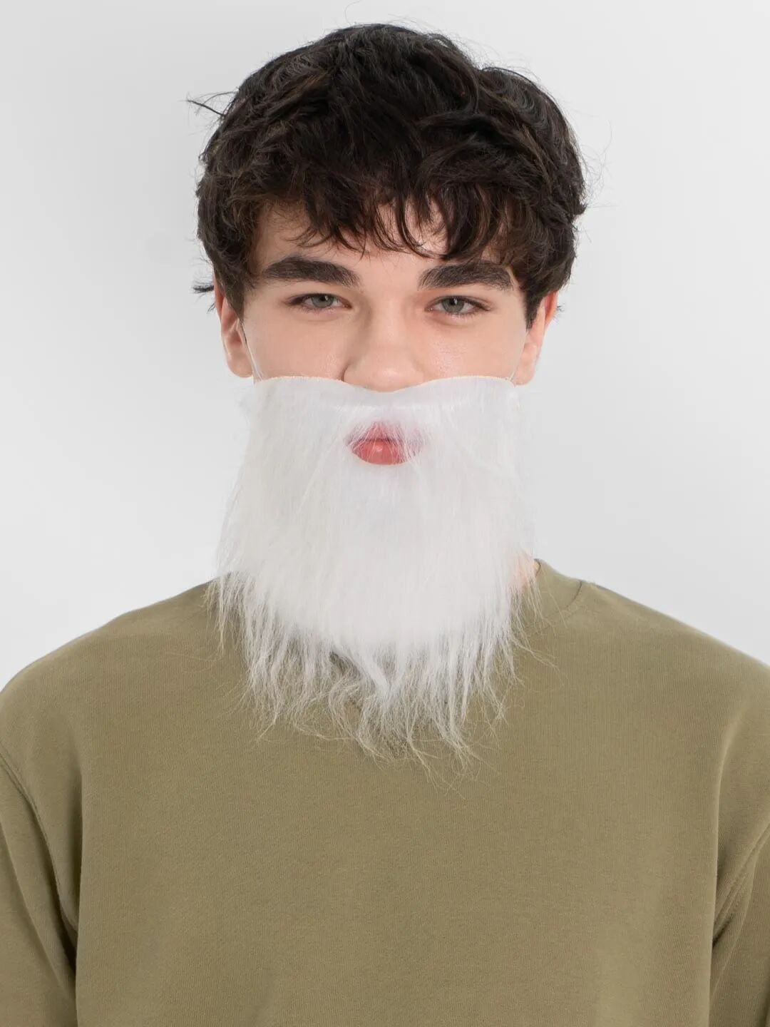 Beyaz Kırçıllı Arkadan Lastikli Beyaz Takma Sakal Yetişkin Çocuk Uyumlu