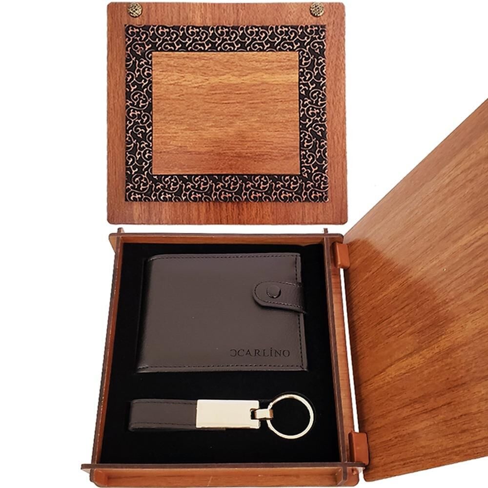 Deri Ahşap Kutulu Cüzdan Ve Anahtarlık Set