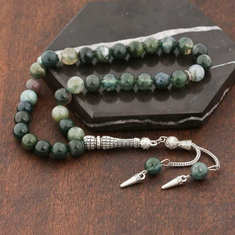 Doğaltaş Metal Püsküllü Hint Akik Taşlı Tesbih