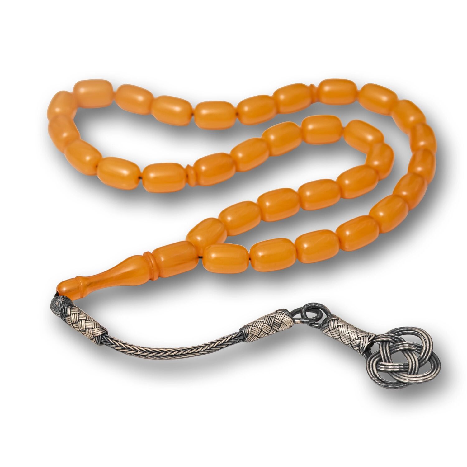 Gümüş Kazaz Püsküllü Kapsül Kesim Sarı Sıkma Kehribar Tesbih