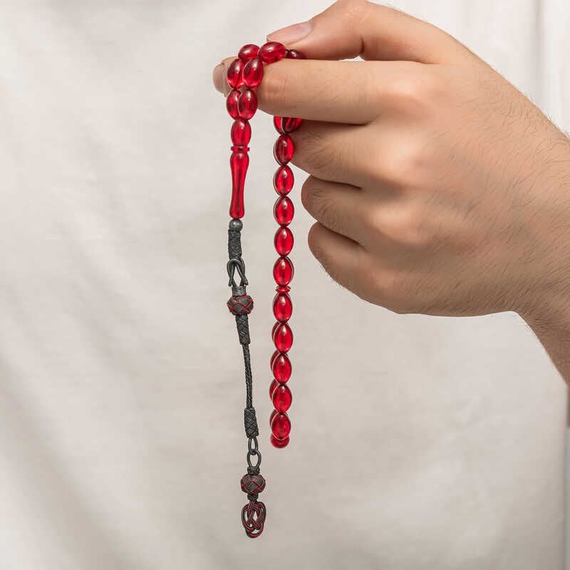 Gümüş Kazaz Püsküllü Sıkma Kehribar Tesbih T8922