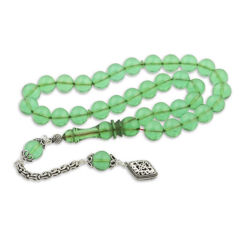 Gümüş Püskül Yeşil Küre Ateş Kehribar Tesbih