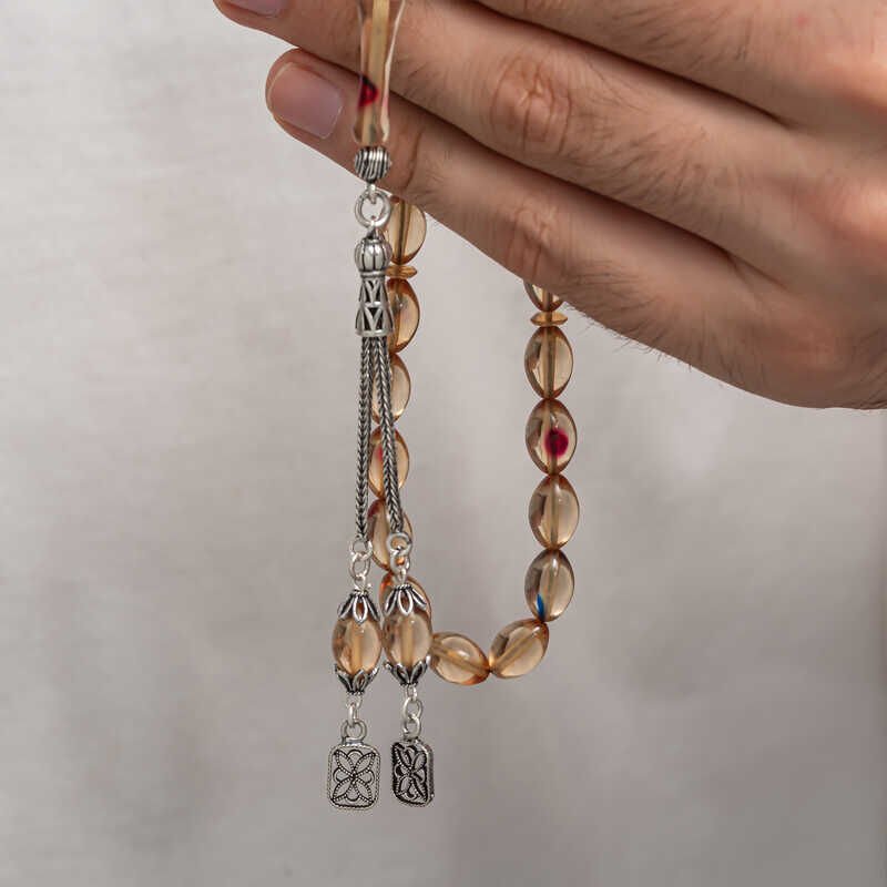 Gümüş Püsküllü Sıkma Kehribar Tesbih