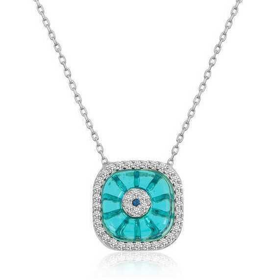 Gümüş Rodyum Kare Camgöz Nazar Bayan Kolye