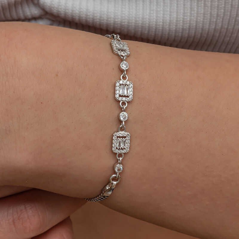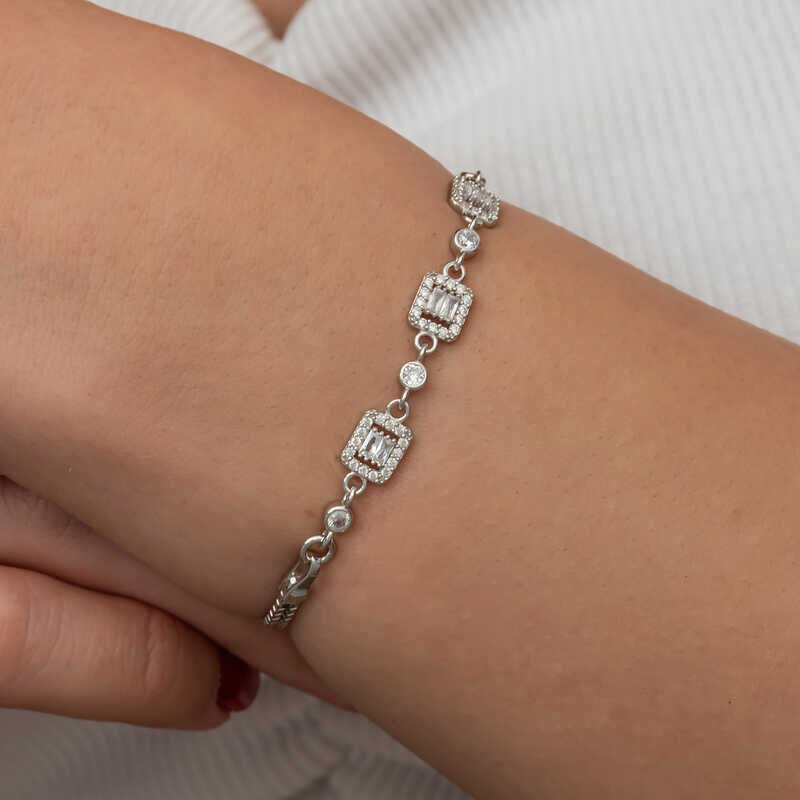 Gümüş Üçlü Baget Taşlı Kadın Bileklik