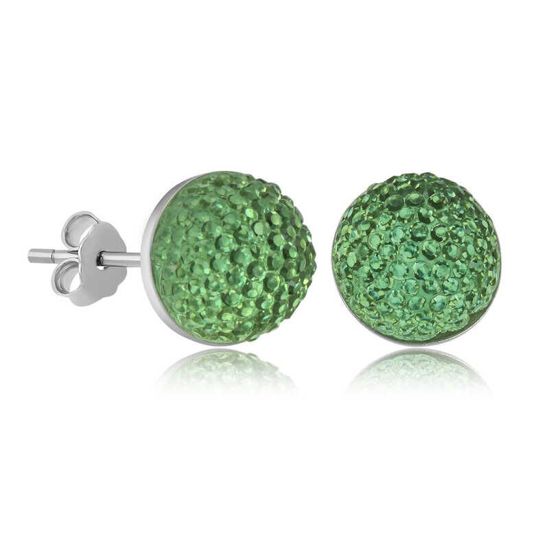 Gümüş Yeşil Kristal Çivili Kadın Küpe