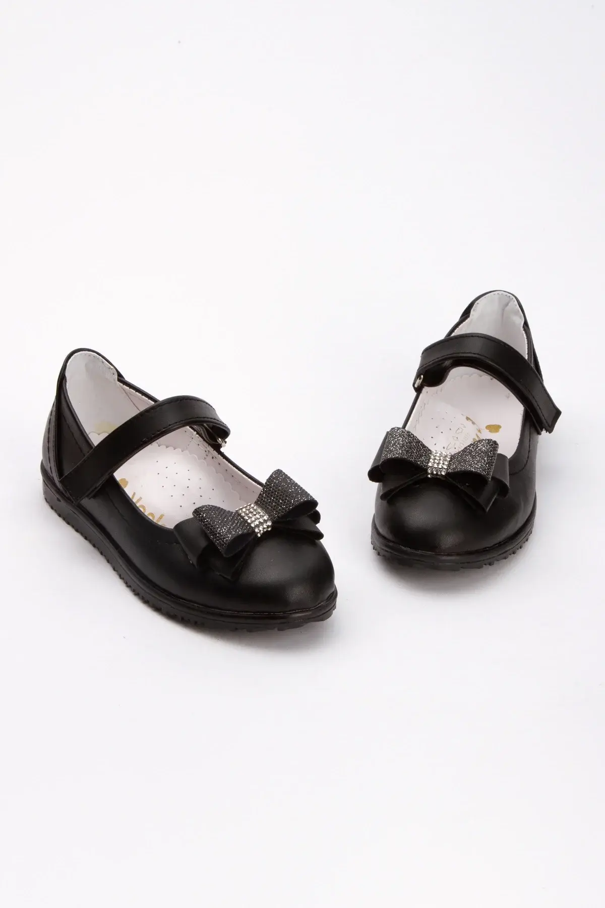 Işıltılı Fiyonk Kaymaz Taban Mat Siyah Çocuk Babet