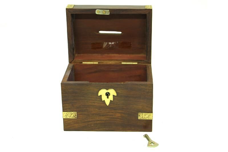 Kumbara Kilitli Ahşap Kutu Kumbara Hediyelik