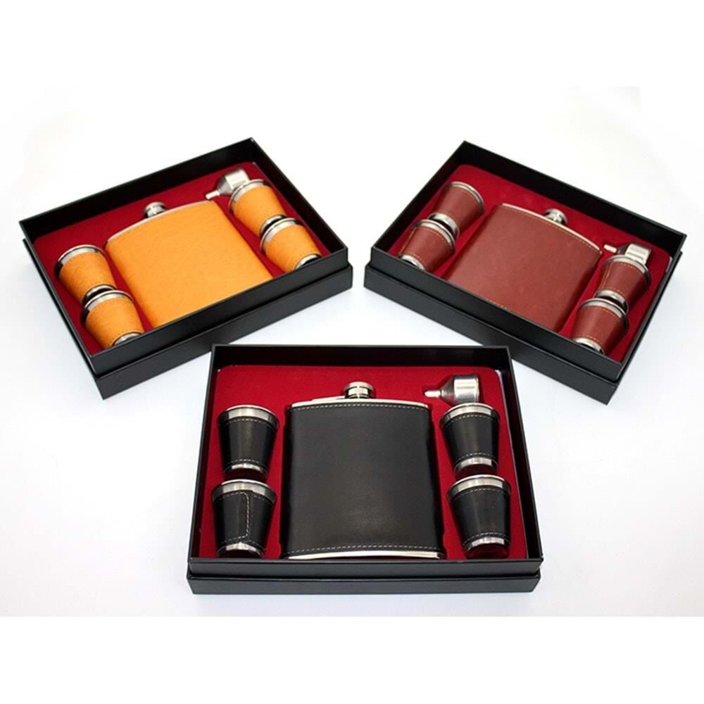 Paslanmaz Çelik 4 Shot Bardaklı Derili Matara Seti