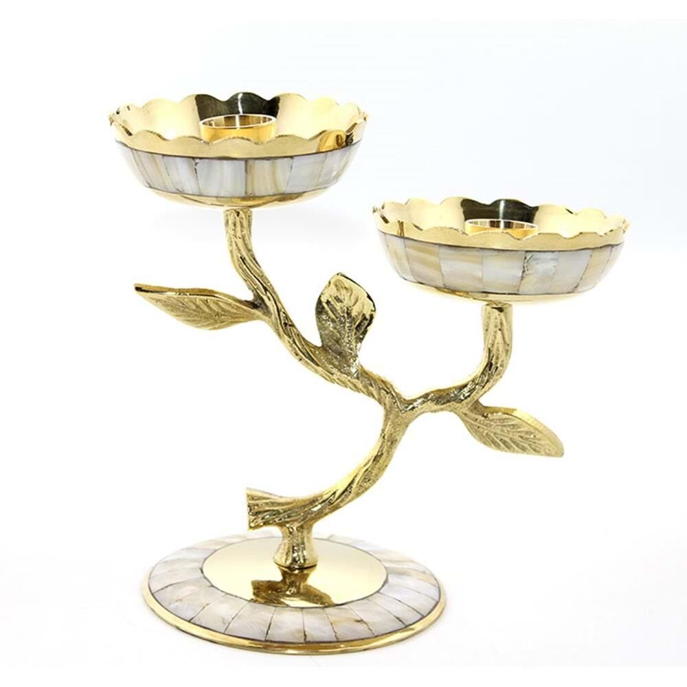 Pirinç Sedefli 2'Li Şamdan
