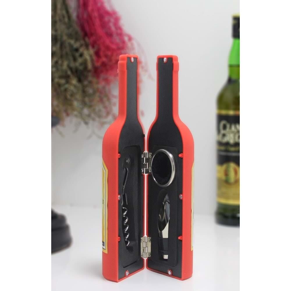 Şişe Tirbuşon Seti Küçük Kırmızı