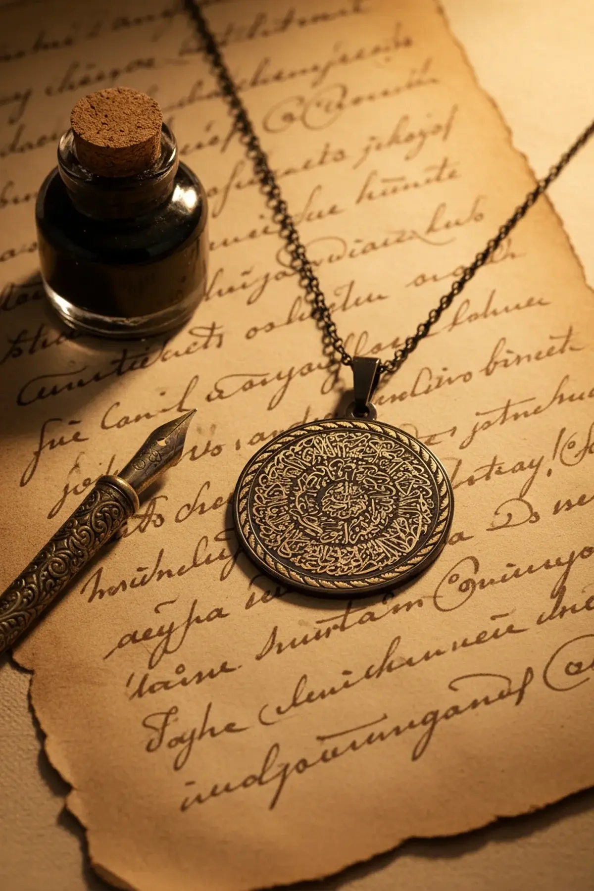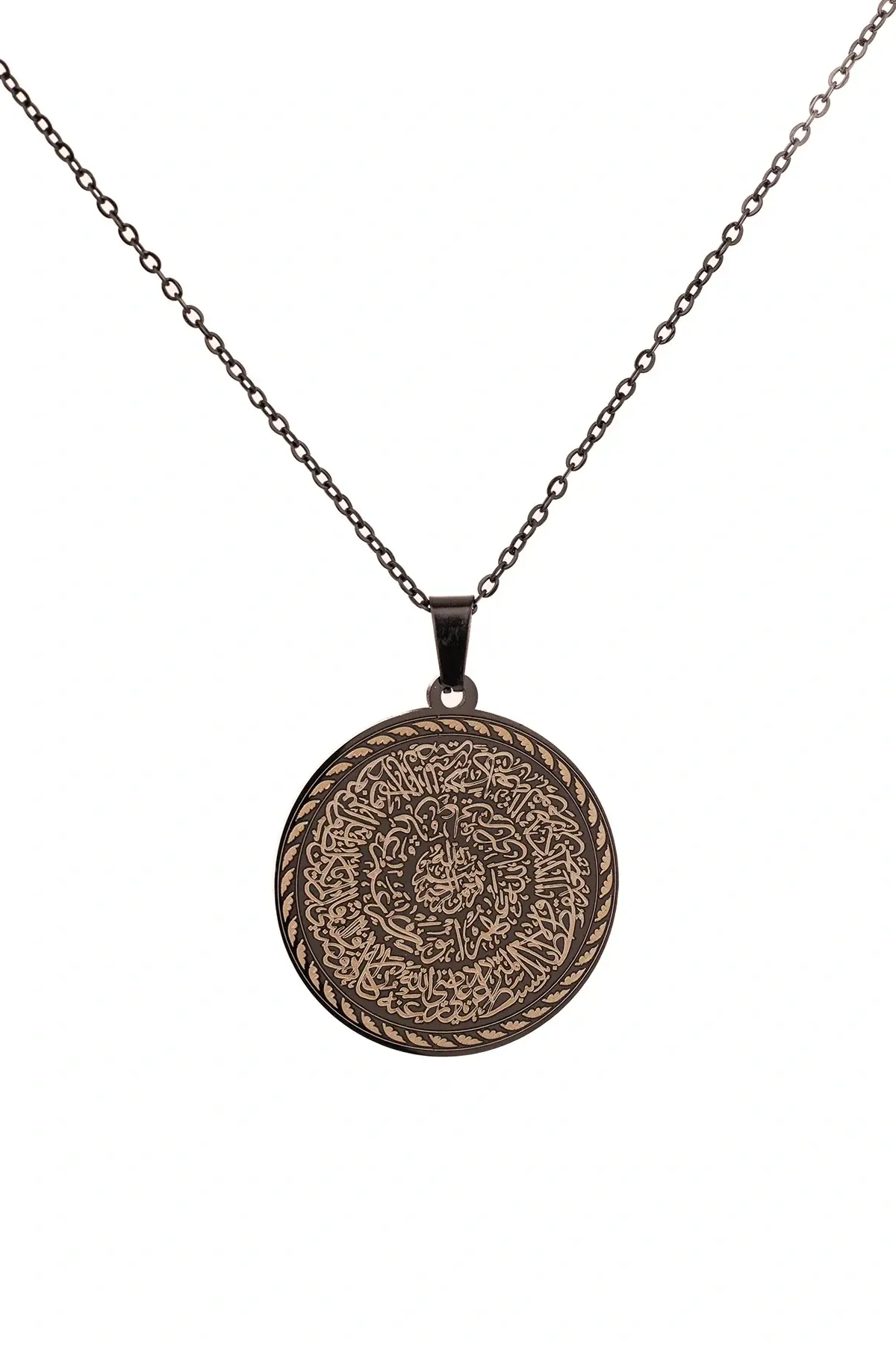 Siyah Hilye-i Şerif Yazılı Paslanmaz Kararmaz Çelik Kolye Çelik Zincir (unisex)