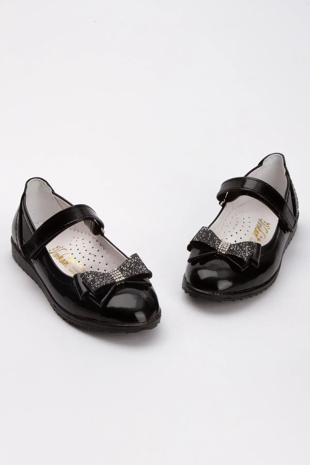 Siyah Parlak Kaymaz Taban Kız Çocuk Prenses Babet