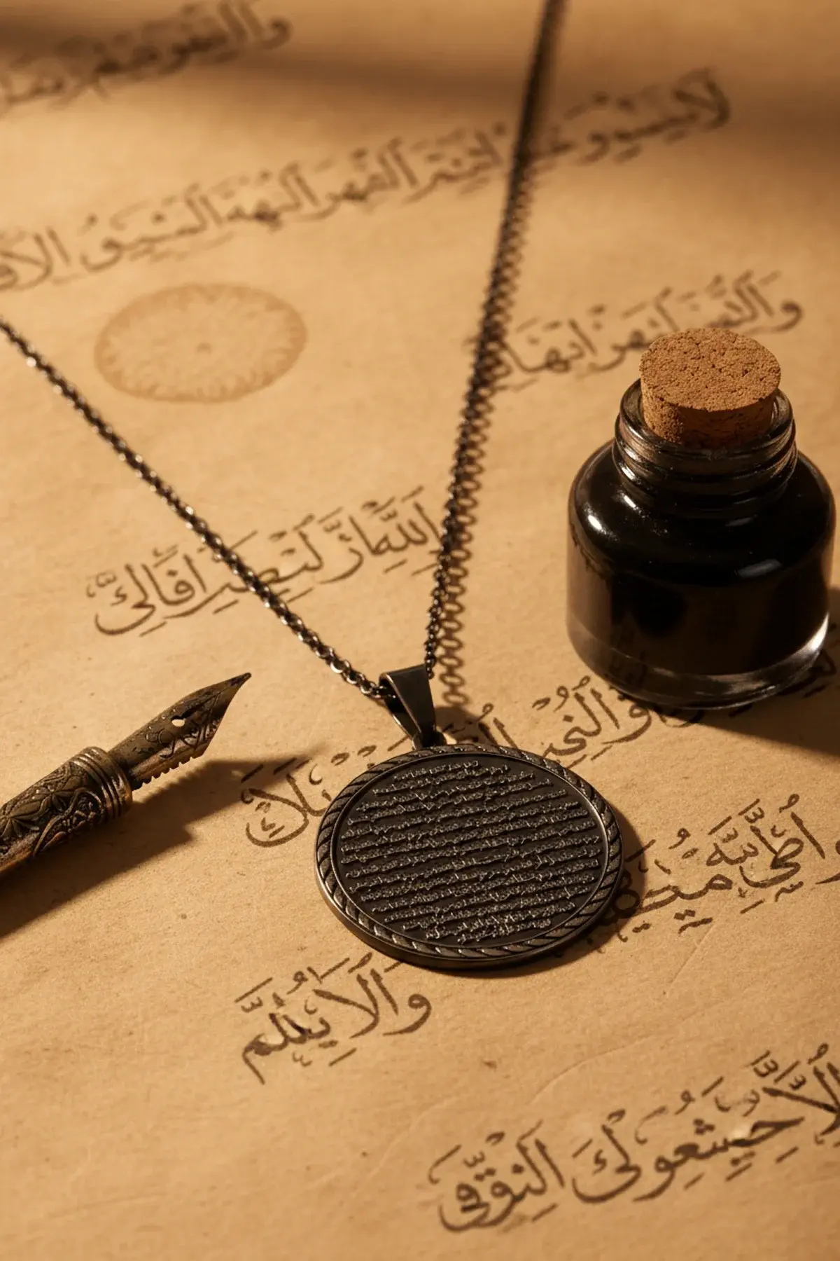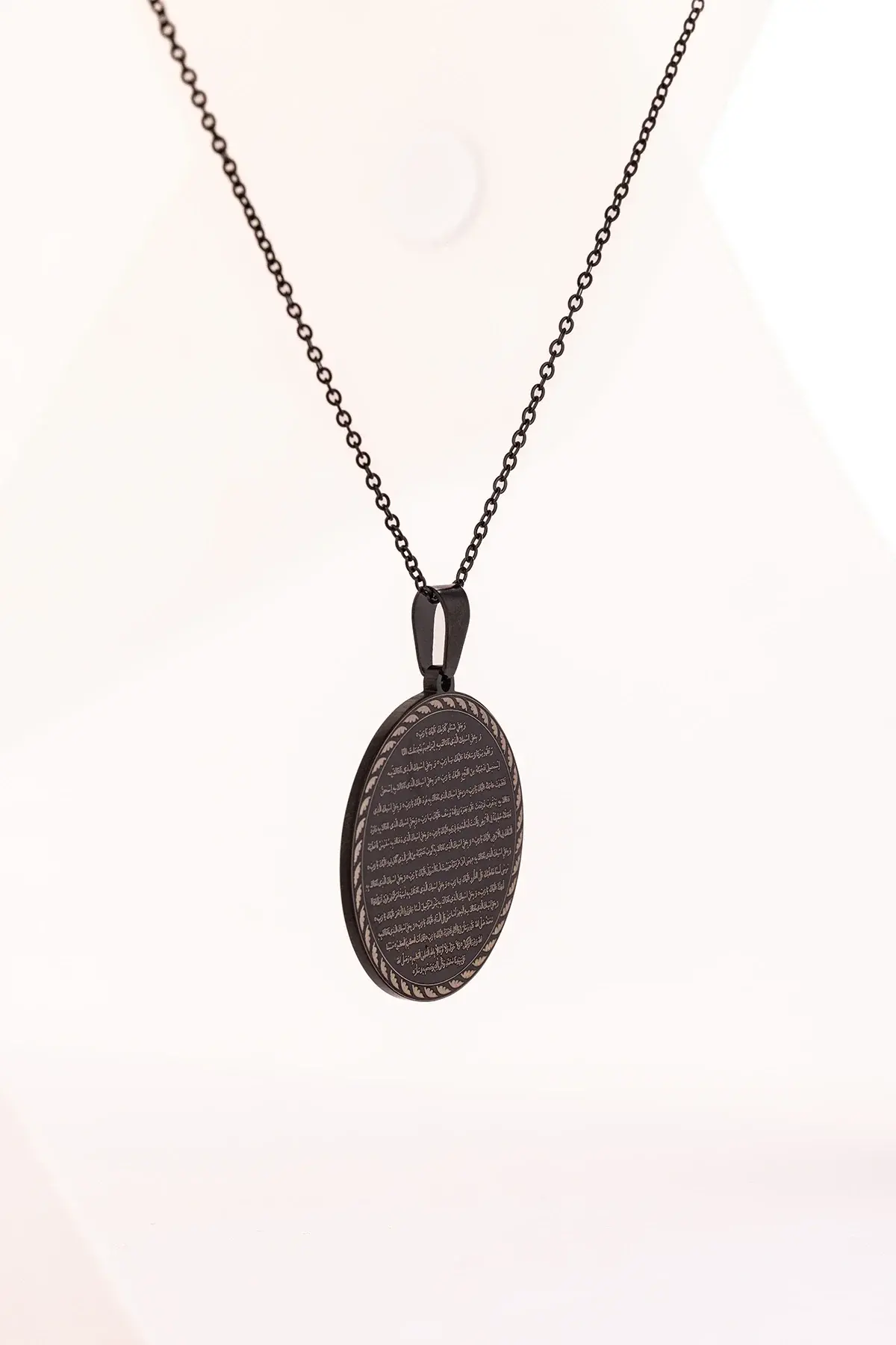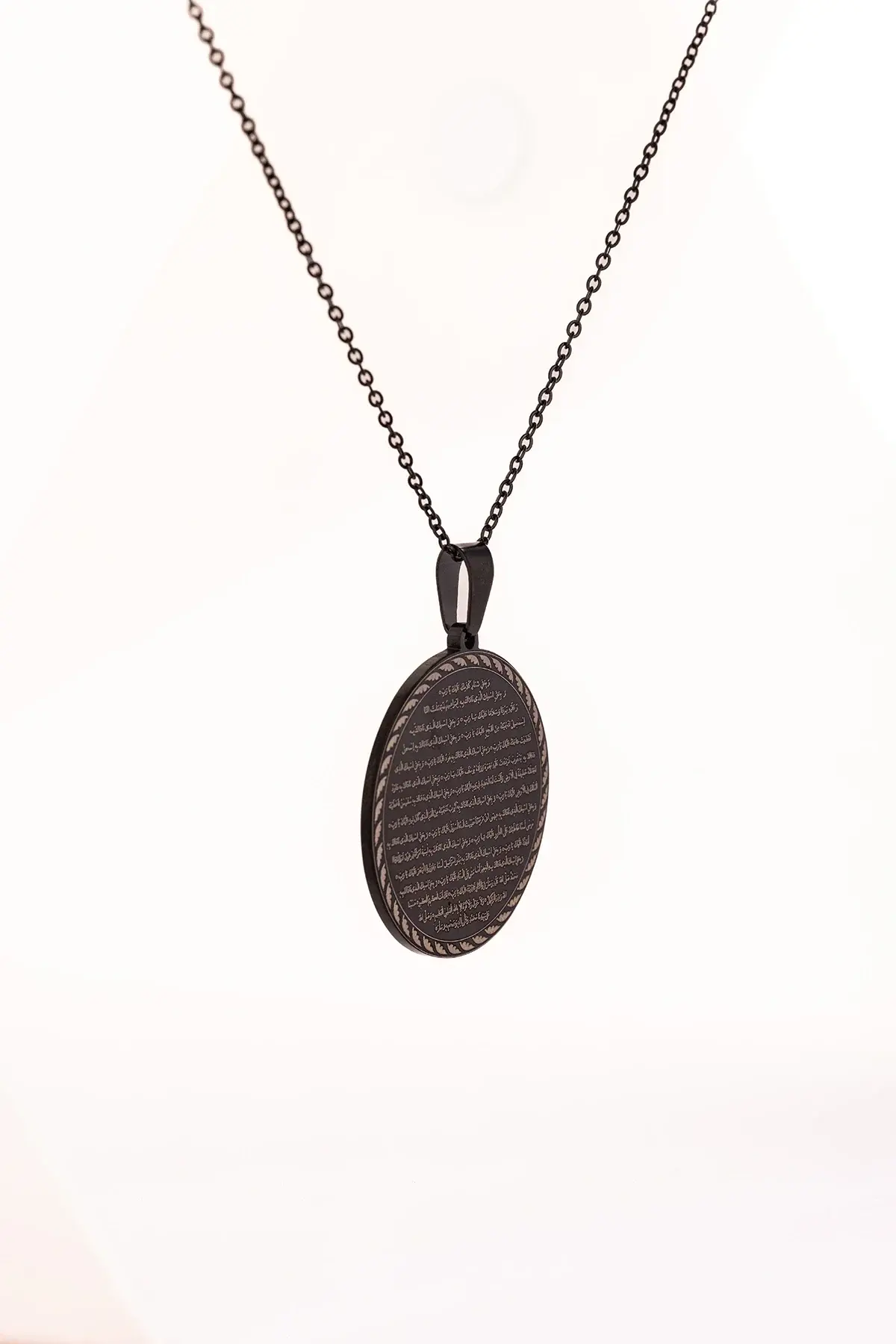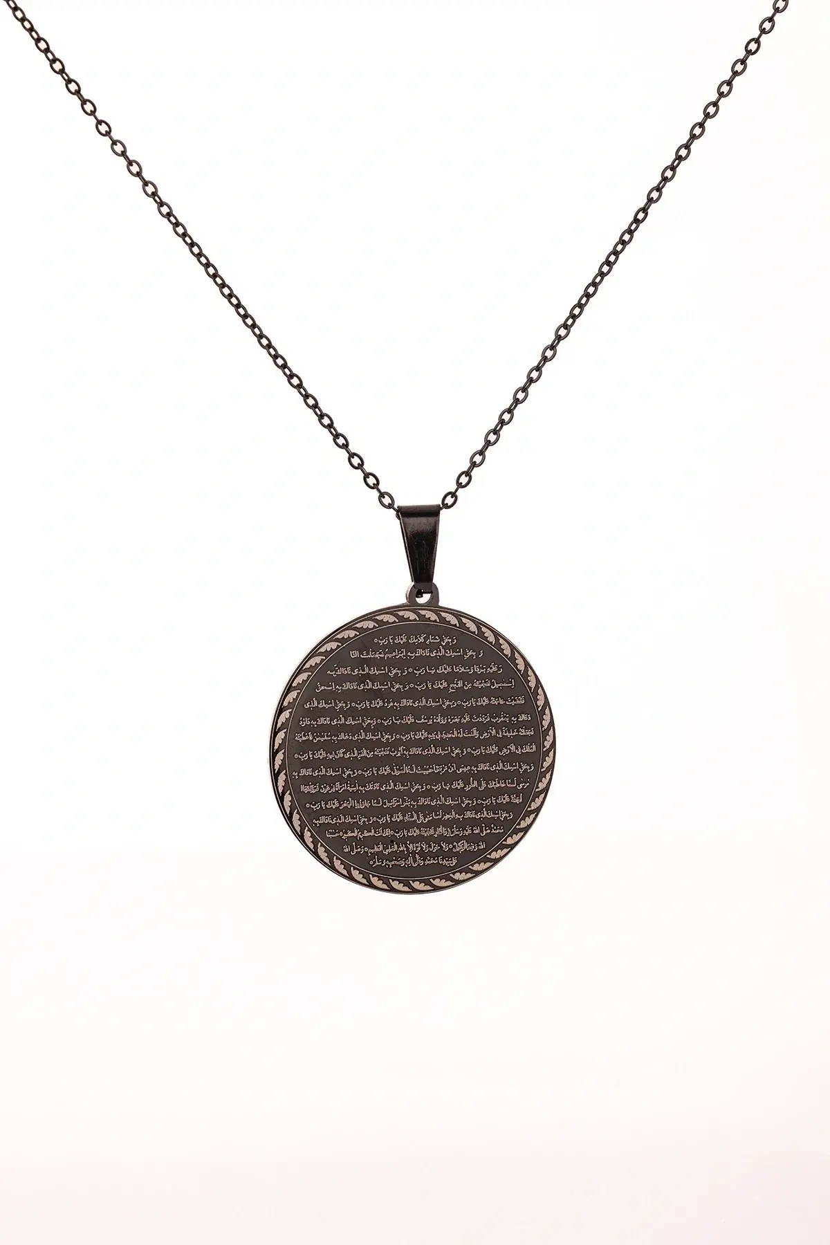 Siyah Vakıa Suresi Yazılı Çelik Kolye Kararmaz Paslanmaz Zincirli Unisex Kolye