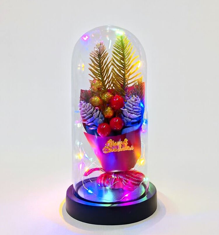 Yılbaşı Temalı Işıklı Dekoratif Cam Fanus