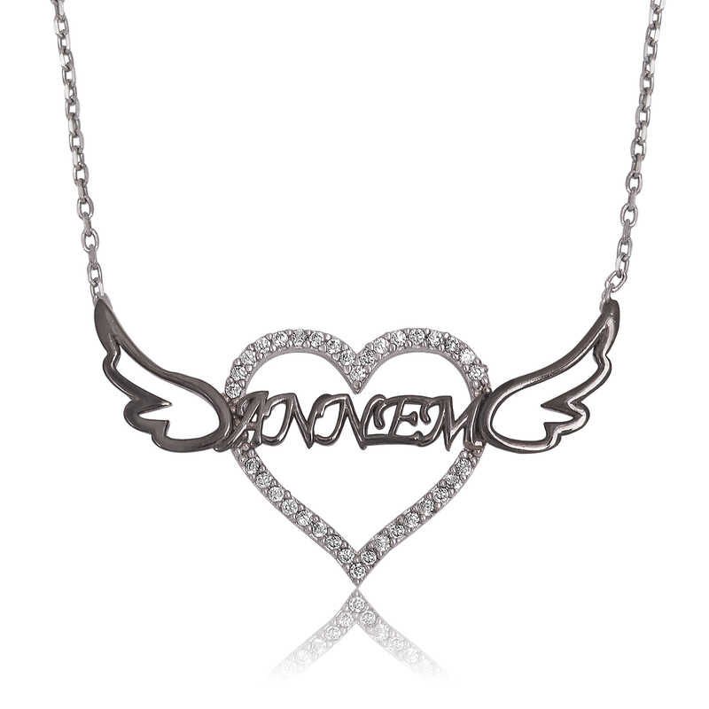 925 Ayar Gümüş Annem Yazılı Kalp Kadın Gümüş Kolye