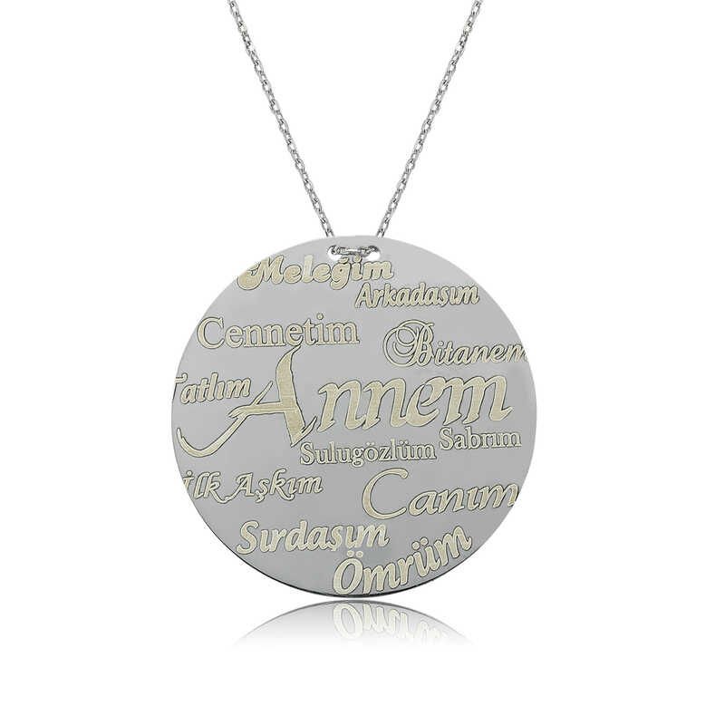 925 Ayar Gümüş Annem Yazılı Plakalı Kadın Gümüş Kolye