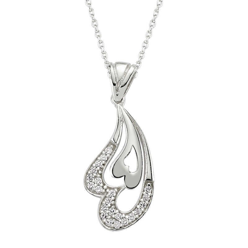 925 Ayar Gümüş Kalpli Kadın Gümüş Kolye