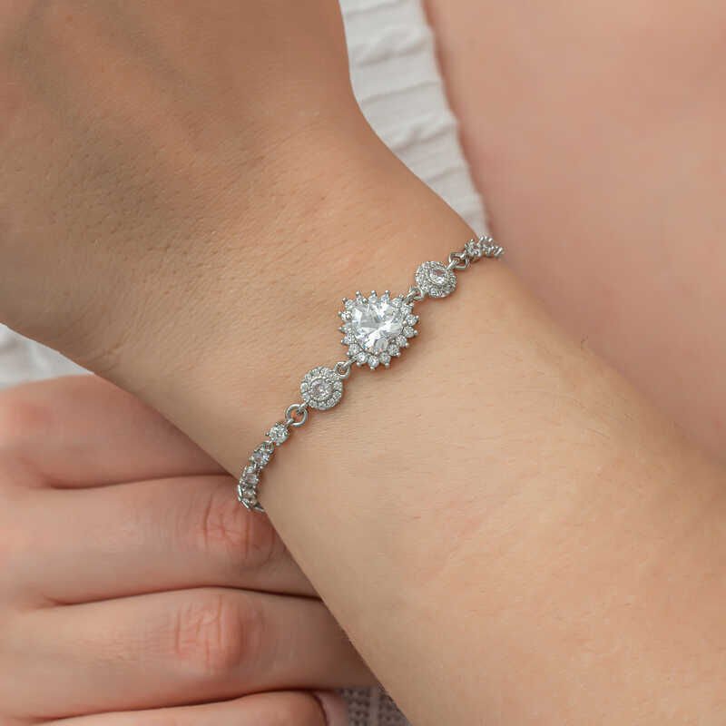 925 Ayar Gümüş Kalpli Su Yolu Kadın Bileklik