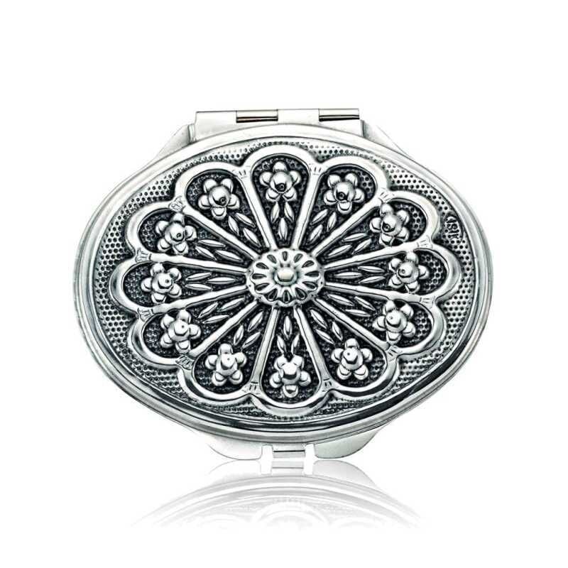 925 Ayar Gümüş Papatya Motifli Kapaklı Oval El Aynası