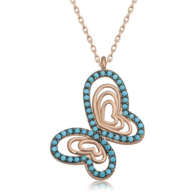 925 Ayar Gümüş Turkuaz Taşlı Kelebek Kadın Gümüş Kolye