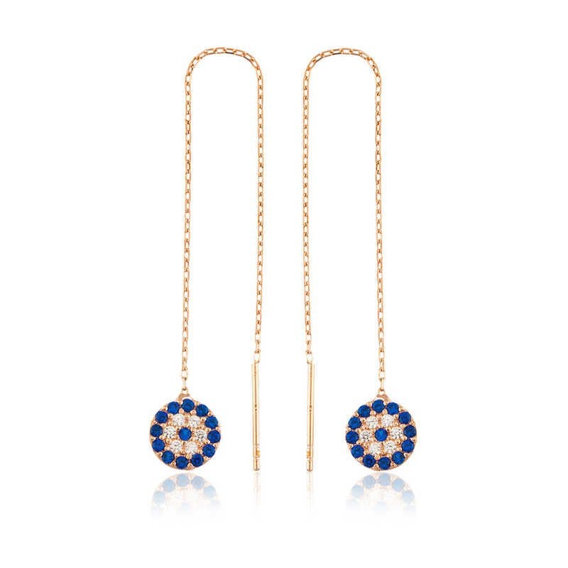 925 Ayar Gümüş Zincirli Nazar Küpe