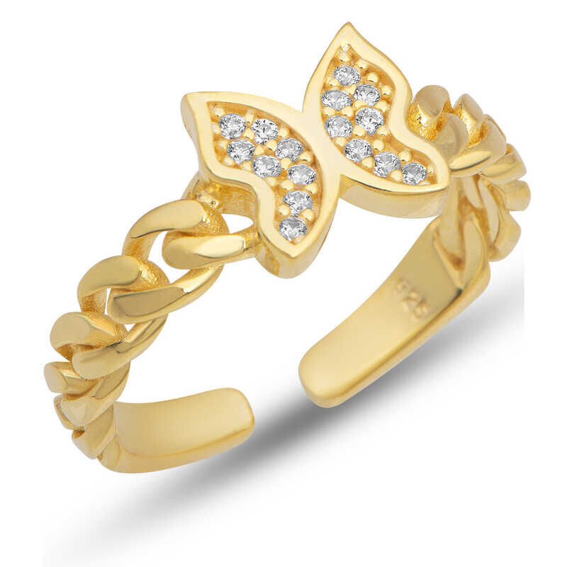 Gümüş Ayarlanabilir Gold Kelebek Kadın Yüzük