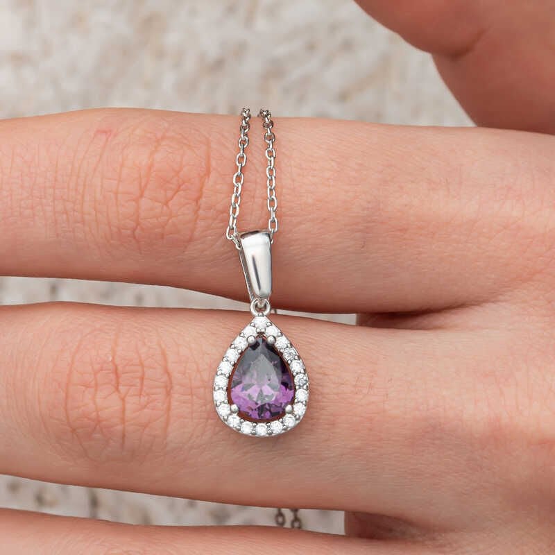 Gümüş Damla Mor Taşlı Kadın Kolye