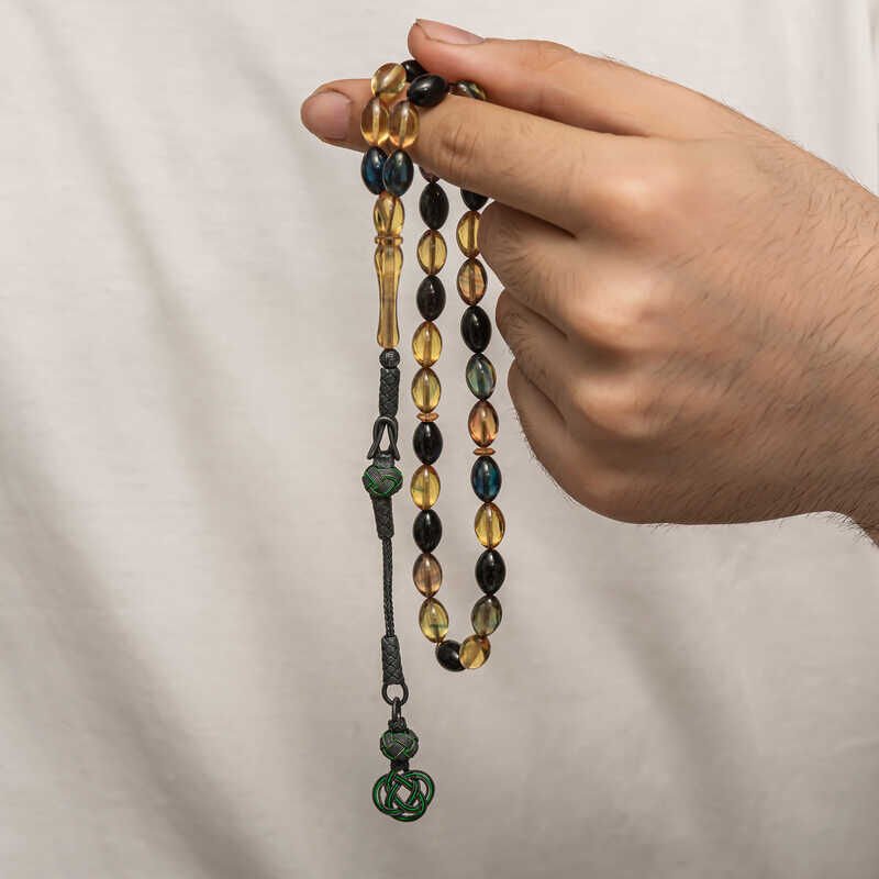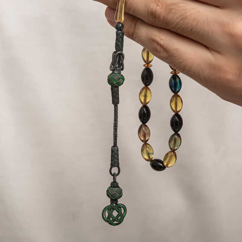 Gümüş Kazaz Püsküllü Sıkma Kehribar Tesbih
