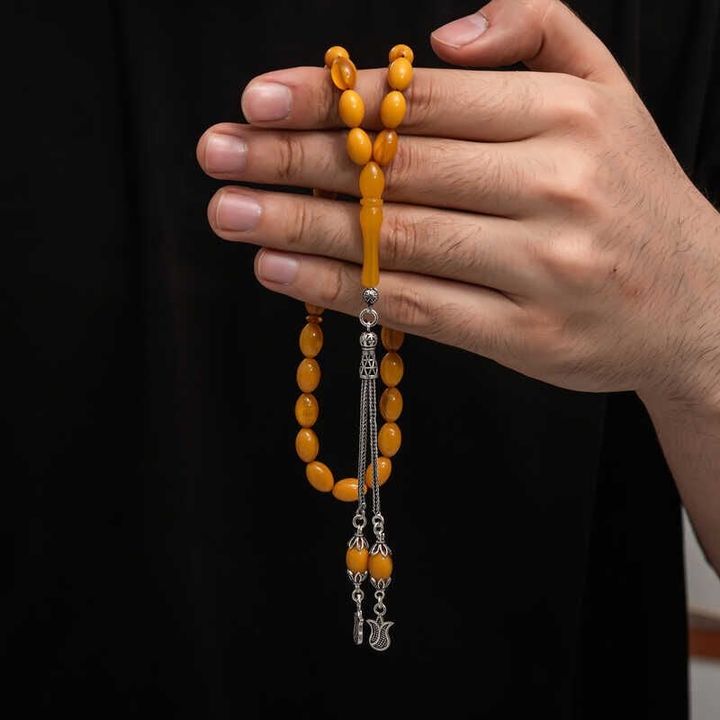 Gümüş Püskül Sıkma Kehribar Tesbih T8791