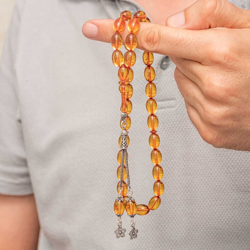 Gümüş Püsküllü Ateş Kehribar Tesbih T9167