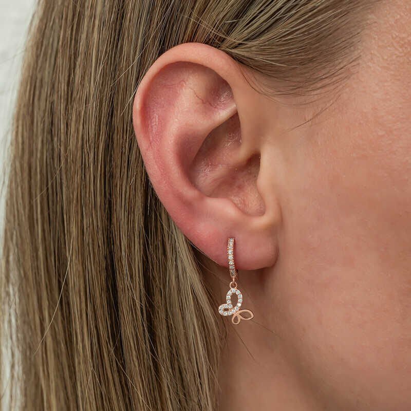 Gümüş Sallantılı Rose Kelebek Kadın Küpe